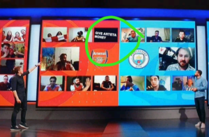 One Arsenal fan was eager to know about the club’ transfer through message across a live TV as Arsenal win against fully packed Manchester City.
