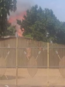 In a social media video, the Fire brigade is seen trying to put out a fire at one of the structures, at Kasubi Tombs.