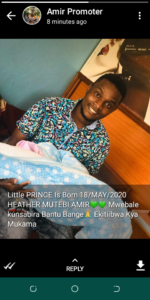 Because of the excitement, her husband and a renown social media Blogger Dictator Amir has rushed and shared the good news to his social media platforms.”Little Prince is Born 18/May/2020 Heather Mutebi Amir. Thanks for your prayers, Glory be to the lord’