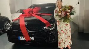 Aveiro shared a photo of the sparkling new black Mercedes on her Instagram account as she posed with a bouquet of flowers.