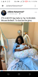 Because of the excitement Juliana who is currently 39years has rushed and shared her happiness on her Facebook page with the caption “IT’S A BOY!!! Say hello to Taj 12-05-2020 we are thrilled!!! To God be the glory’