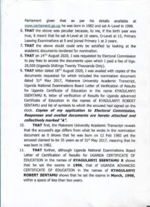 City lawyer Mabirizi biased the fact that one cannot complete a 13 year eductation cycle when he is 16 years old and thus requested for academic documents that Bobi Wine submitted while being nominated for Kyadondo East Constituency parliamentary elections in 2017. The following is what he found out as discrepancies and unexplained irregularities in the documents.