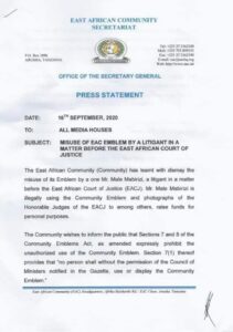 Male Mabiriizi in trouble over Using the East African Court if Justice Emblem and Photographs to fraudulently collect money from people.