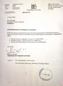 Wabula waliwo ebbaluwa eriko omukono gwa Director General wa Ministry of Health- Uganda Dr. Henry G. Mwebesa eraga nti bano bakugenda mu ‘quarantine’ mu Legacy Courts Plot 4 Younger Avenue e Bugoloobi. Ebbaluwa eraga nti bano balina okwevugira mu motoka eyaabwe bokka okutuuka mu kifo kino era babeere nayo okutuusa enaku 14 bwezinagwako nti era bakugibwako ‘samples’ nga bali mu ‘quarantine’