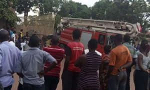 The Fire brigade is trying to put out a fire at one of the structures, at Kasubi Tombs (PHOTO/Facebook) In a...