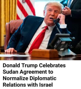 President Donald Trump tweeted his support for the agreement between Sudan and Israel, promising Sudan would be removed from the US State Sponsors of Terrorism list once the $335 million deposit was made.