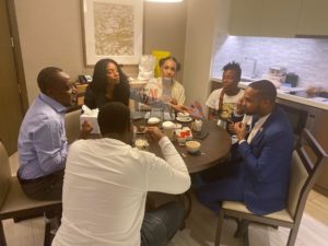 – In a photo shared by Jamal Gaddafi, the mother of one joined the TV host for her first Iftar